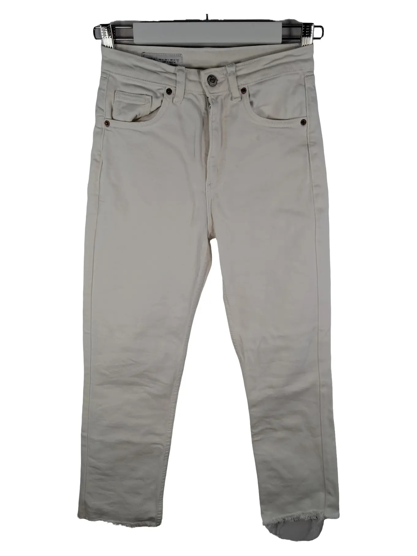 ZARA Damen Jeans Slim Fit High Waist Cropped Gr. 34 Beige Destroyed Saum