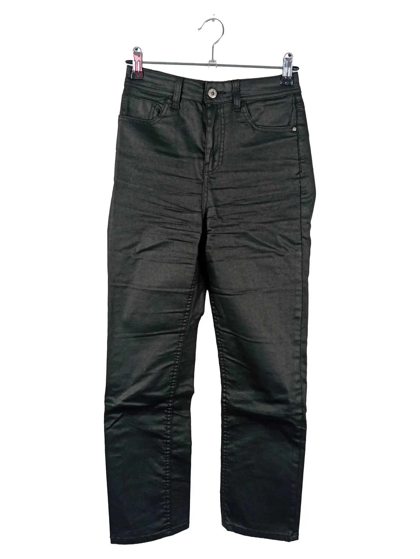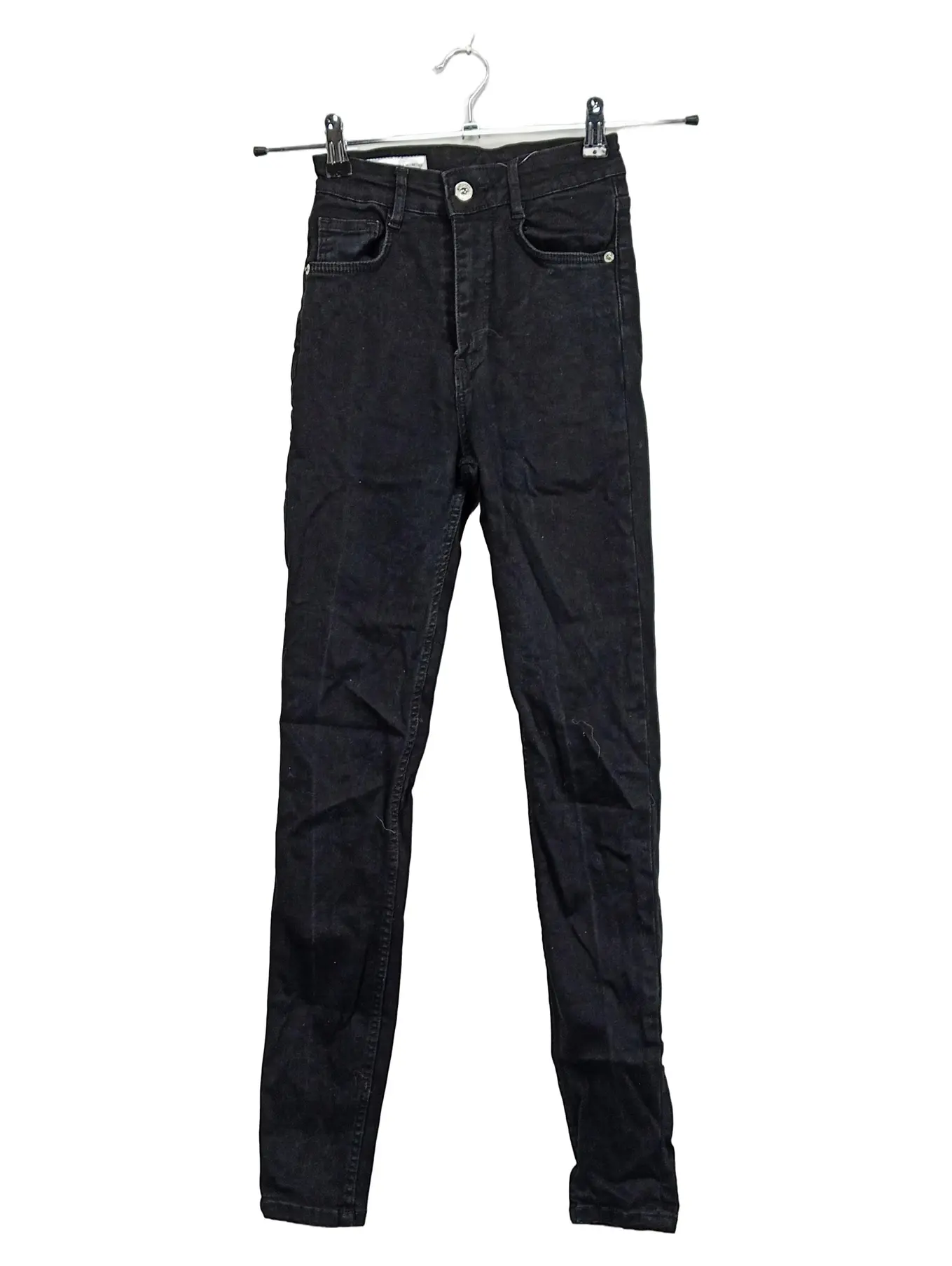 ZARA Damen Slim Fit Jeans Hose Schwarz Größe 34 XS High Waist Skinny