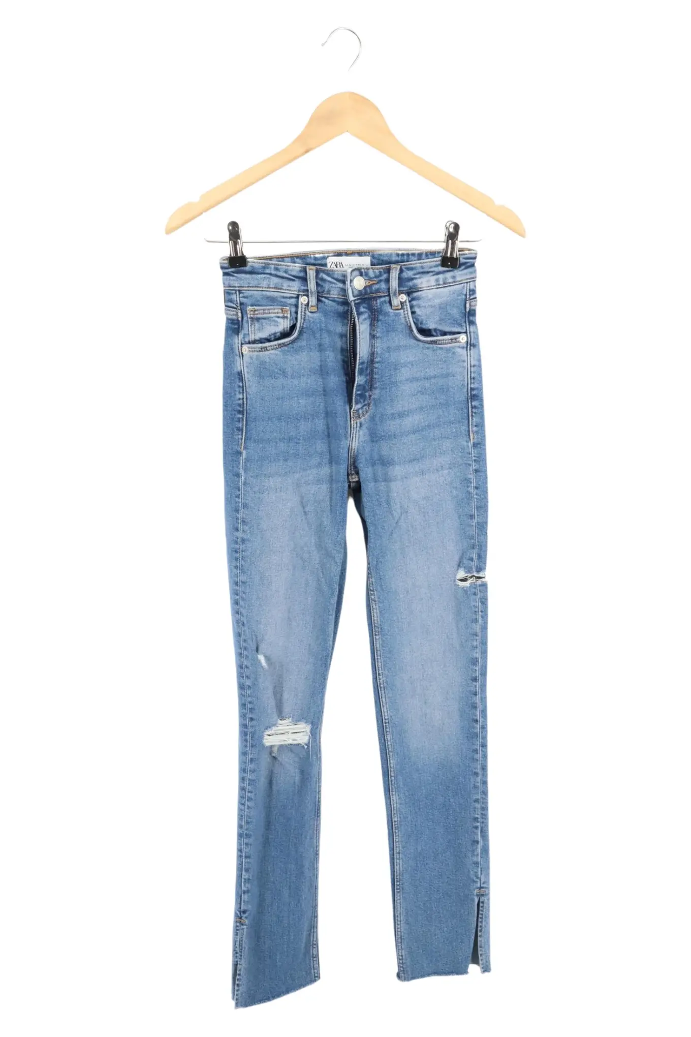 ZARA Damen Jeans Slim Fit Gr. 32/XXS Blau High Waist Destroyed Casual
