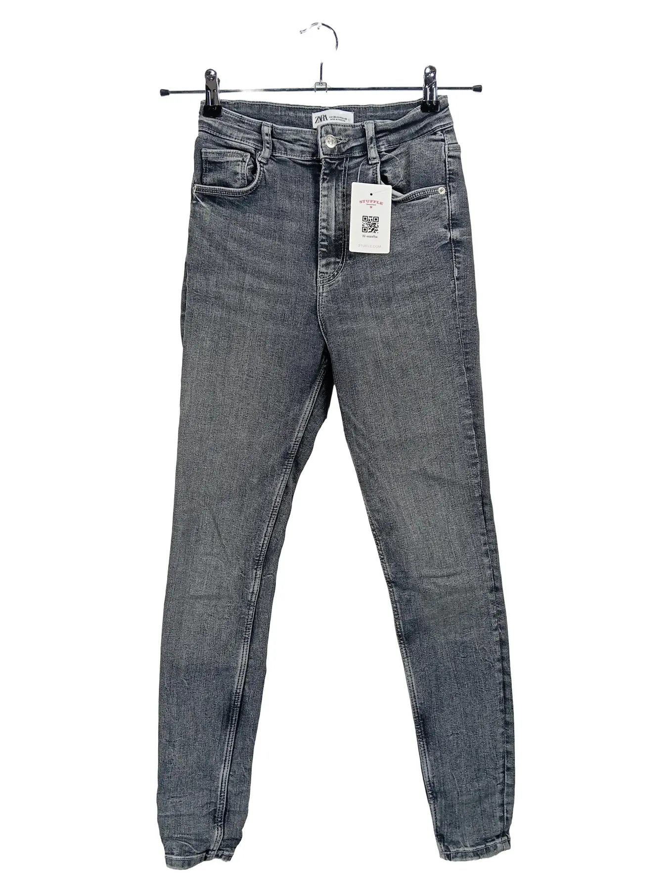 ZARA Damen Slim Fit Jeans Grau Größe 36 W28 High Waist Skinny