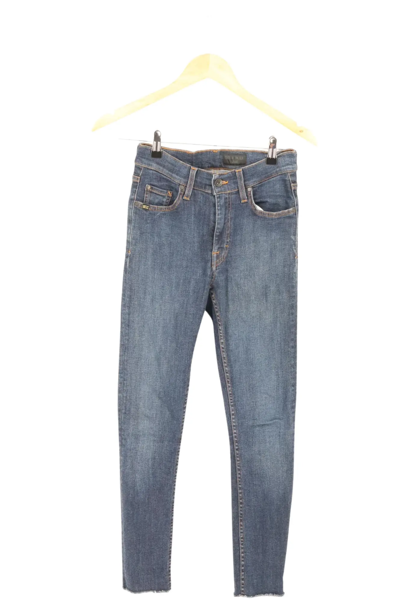Markenlos Damen Jeans Slim Fit High Waist Blau W25 Destroyed Saum Skinny Gr. 34 Damen