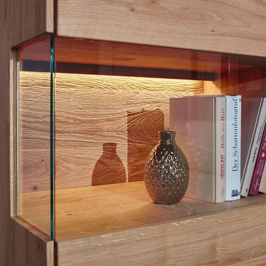 Wohnzimmer Highboard mit 164 cm Breite in Eiche massiv geölt, inkl. LED-Beleuchtung - WELLAND-69