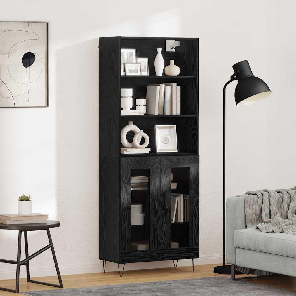 Langlebige Highboard Schwarz Eichen-Optik 69,5 x 34 x 180cm Holzwerkstoff - Möbel443873 - Kommoden