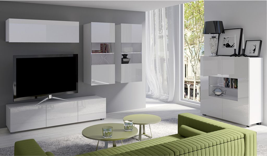 Wohnmöbel Set mit Highboard in weiß Hochglanz CAIRNS-132