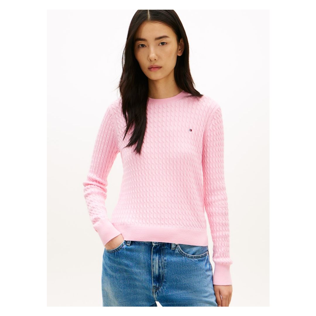 Damen Tommy Hilfiger CO CABLE FINE GG C-NK LS SWEATER, Orange, XL, Damen-Pullover, Strick-Pullover