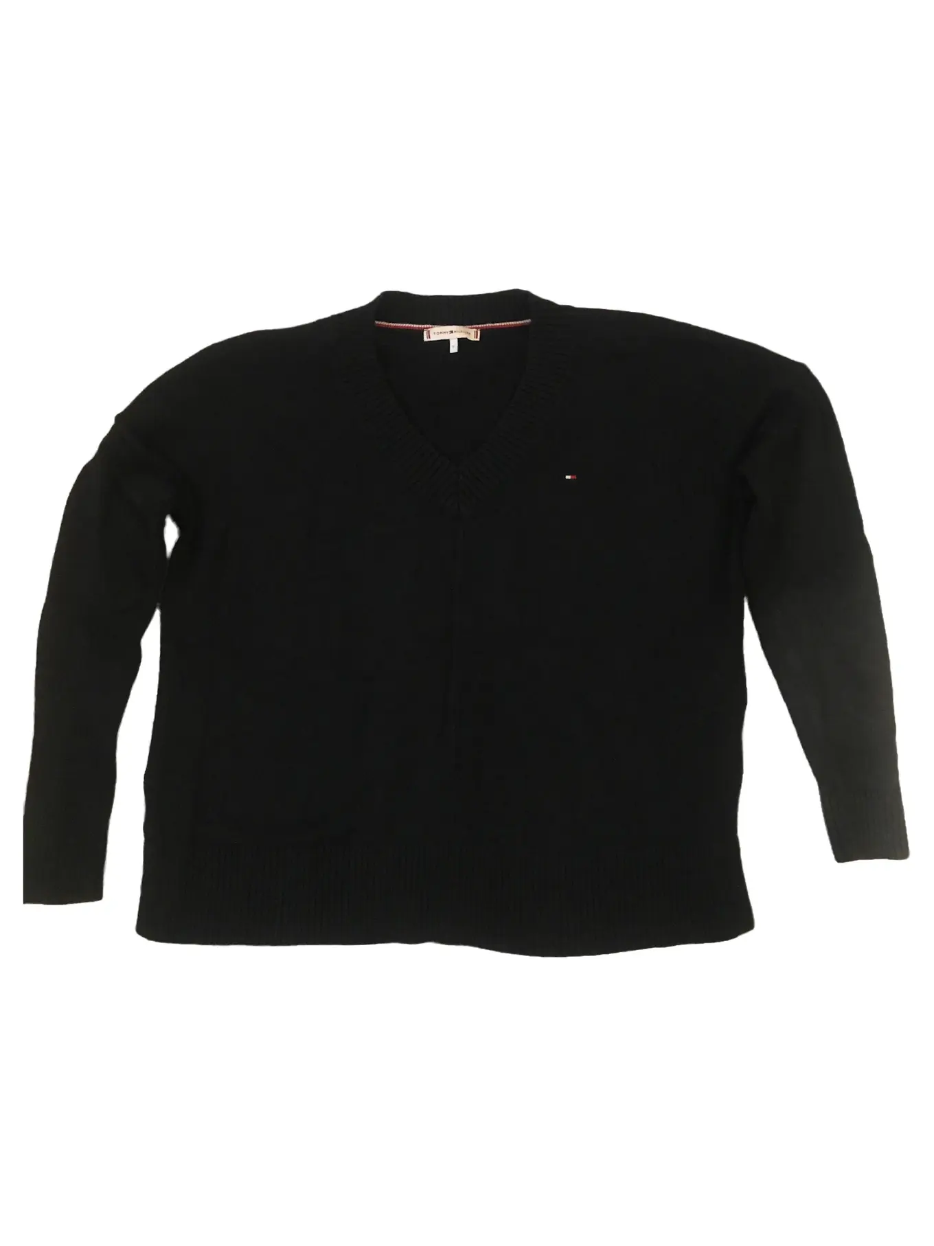 TOMMY HILFIGER Pullover Damen Gr. M Schwarz Casual V-Ausschnitt