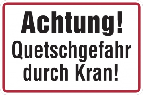 Dreifke Hinweisschild, Achtung! Quetschgefahr durch Kran!, 200x300mm, Alu ge...
