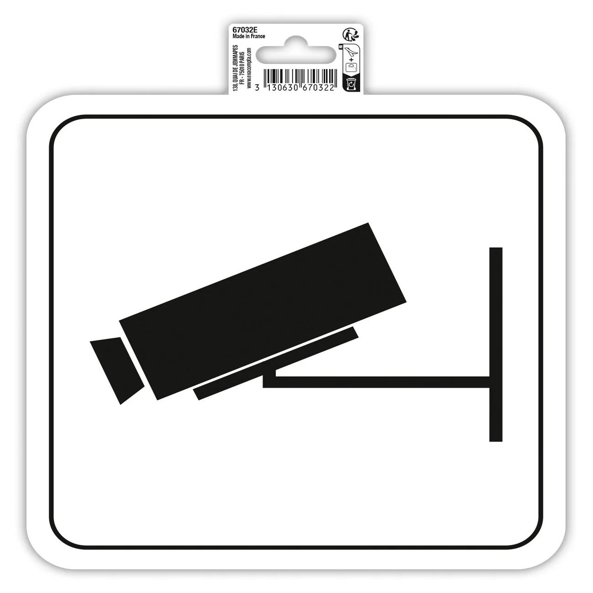 Exacompta 67032E Hinweisschild, Videoüberwachung, PVC, selbstklebend und rutschfest, 20x20 cm - Weiß