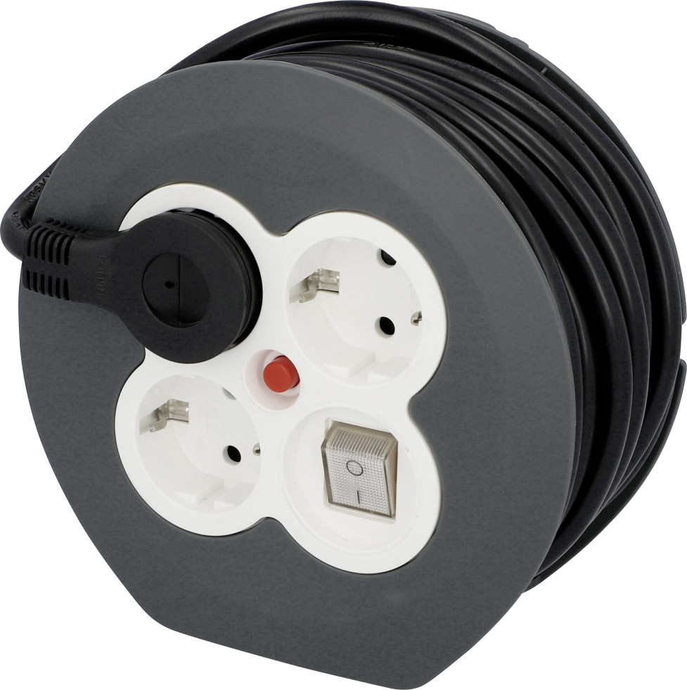 Kabeltrommel Innen 7m HO5VV-F3G1,5, schwarz, 3x Stecker