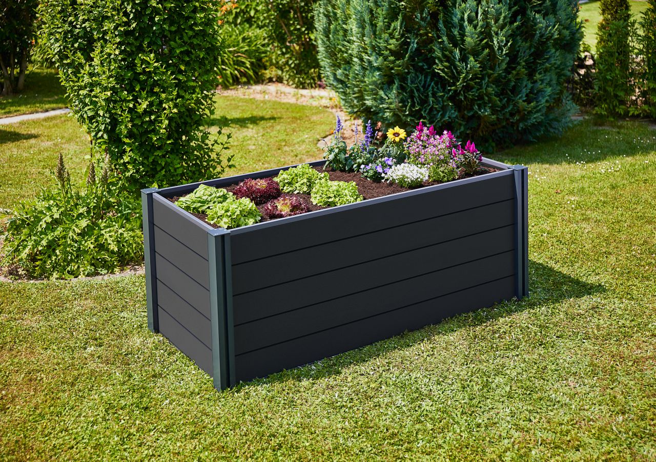 WPC-Hochbeet Pflanzkasten für Gemüse, Kräuter und Blumen | 3 Größen erhältlich | Farbe: Anthrazit in Holzoptik | Wetterfest und pflegeleicht ...