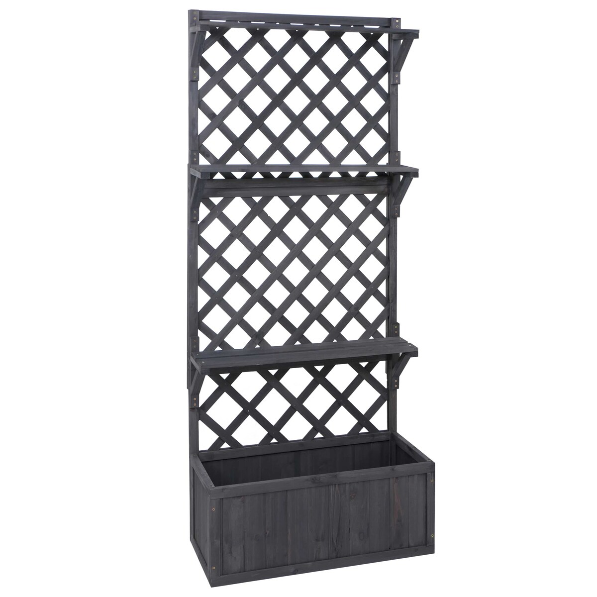 Hochbeet mit Pflanz-/Blumenkasten und Rankgitter, Ablage Hängekästen aus Holz, 135x70x30cm - anthrazit-grau