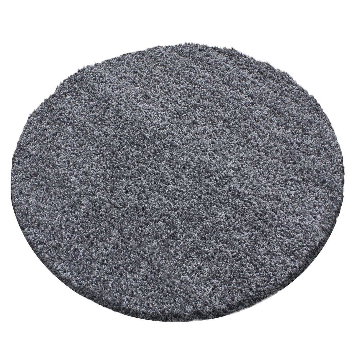 Hochflorteppich Shaggy Einfarbig Weich Flauschig Waschbar Strapazierfähig Schlafzimmer Rund Grau 160x160 cm – SALZACH von Kadima Design
