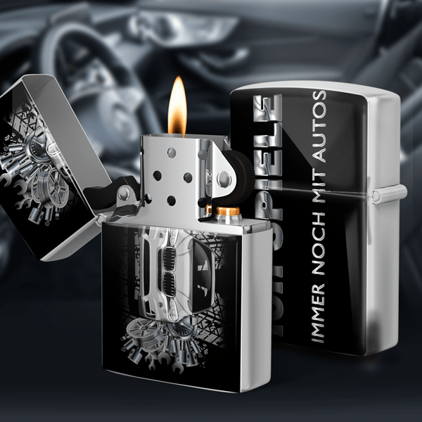 Edles Feuerzeug für Männer aus Metall: stabil u. hochwertig. Feuerzeuge bedrucken bei auto4style ist ein gutes persönliches Geschenk für Freund