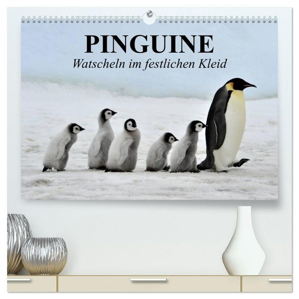 Pinguine - Watscheln im festlichen Kleid (hochwertiger Premium Wandkalender 2026 DIN A2 quer), Kunstdruck in Hochglanz