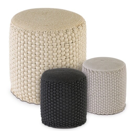 Pouf Set 3 Stück Ø 55 cm Bodenkissen Strickhocker Sitzhocker Sitzkissen Hocker nachhaltig Grobstrick beige & beige & beige