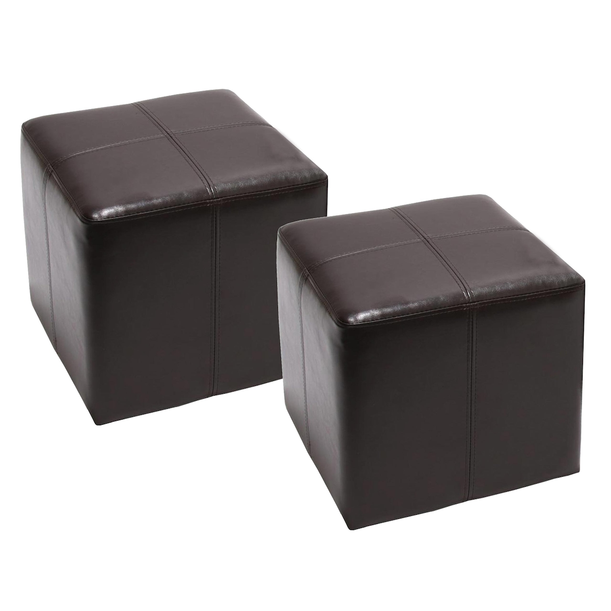 Mendler 2er-Set Sitzwürfel Hocker Sitzhocker Onex, Leder + Kunstleder, 36x36x36cm FSC -zertifiziert ~ braun