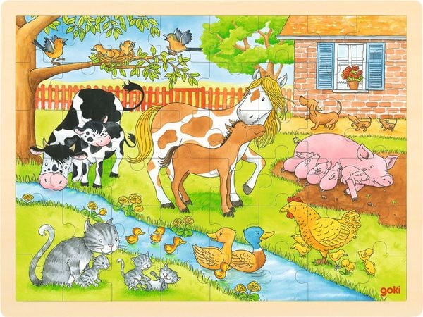 Goki 57745 - Einlegepuzzle Leben auf dem Bauernhof, 48-teilig, Holz, 40x30cm