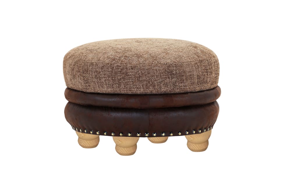 Gutmann Factory Hocker Cottage, braun Leder, Holz, Stoff