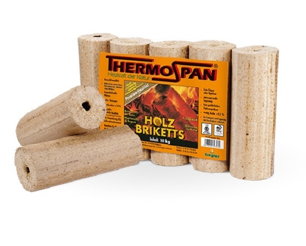Thermospan Holzbriketts 10kg Mischholzspähne runde Form aus deutschen Wäldern helle Farbe