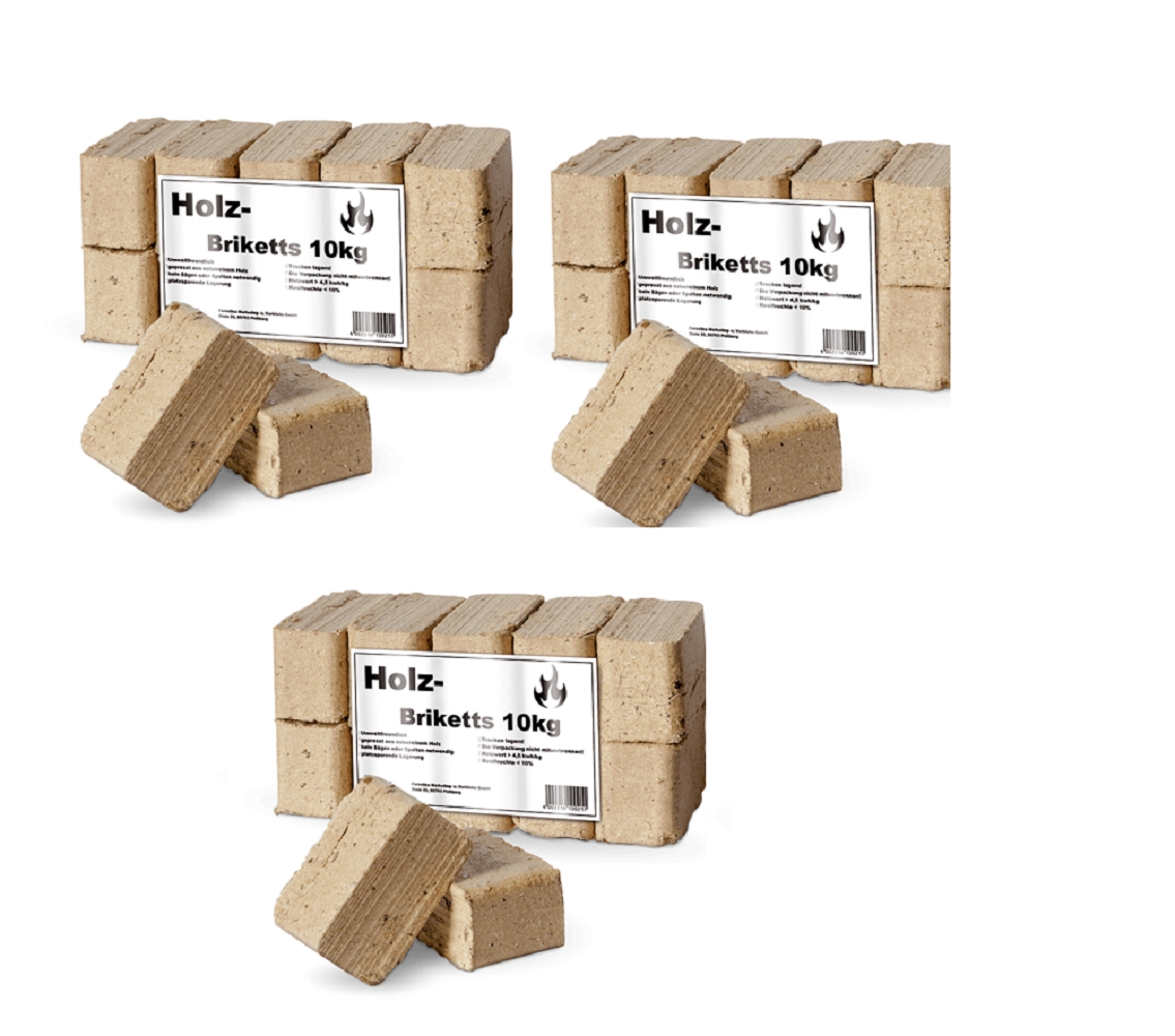 30KG Holzbriketts RUF 3x10KG Foliert Brennstoff Kamin Ofen Feuer