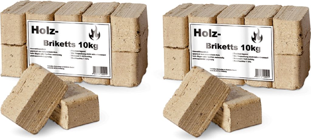 2 x 10 kg Rundholzbriketts 20 kg Holzbriketts Buche Eiche Weichholz Mischholz