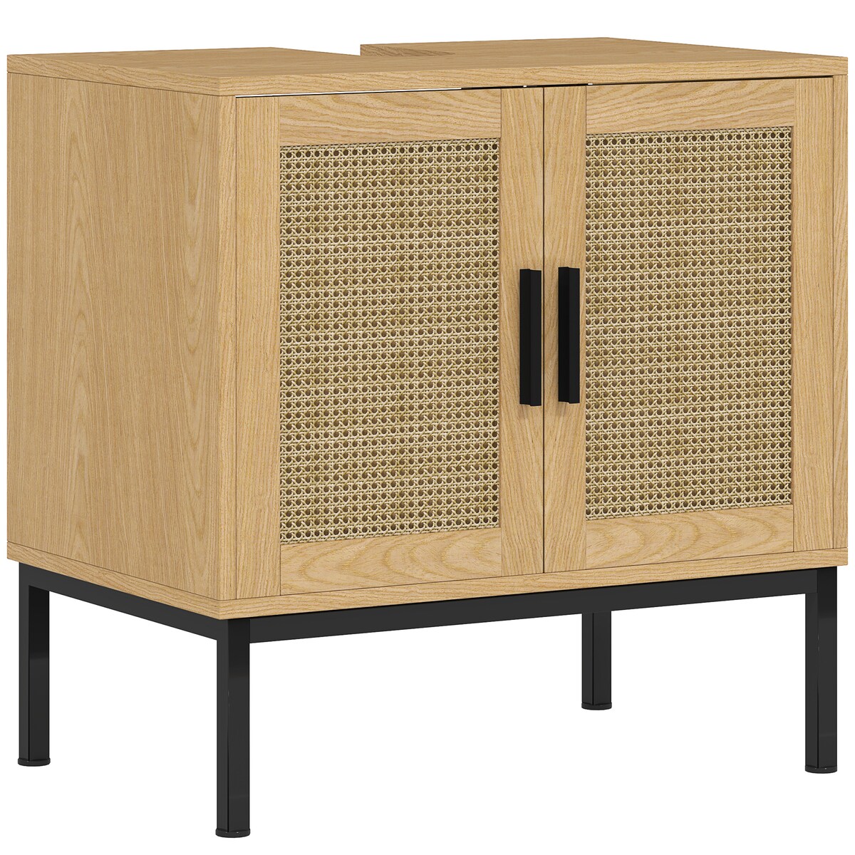 OKWISH Waschtischunterschrank 60x39x60 Stauraumschrank Badmöbel Rattanoptik Holzimitat Kippschutz Modern Boho Regal Eiche