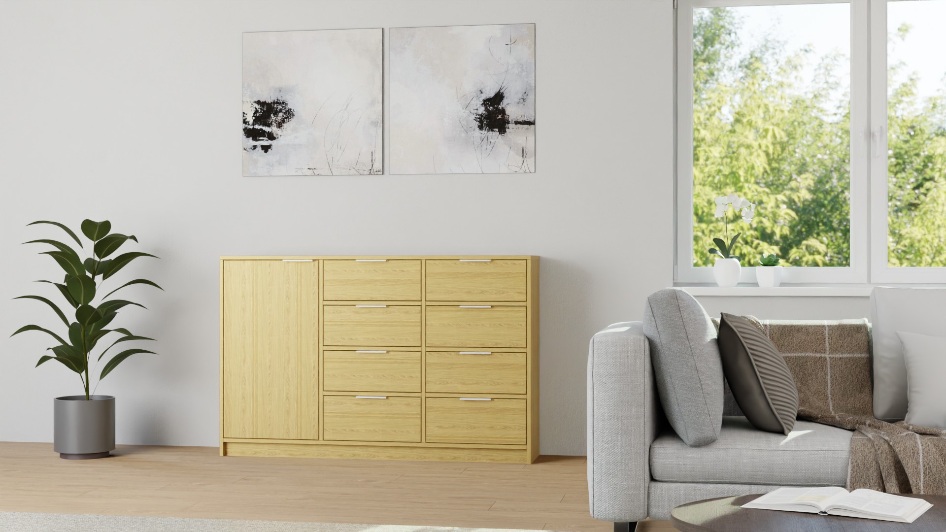 Morino-Holzkommode 180 cm, Eiche, Skandinavisch