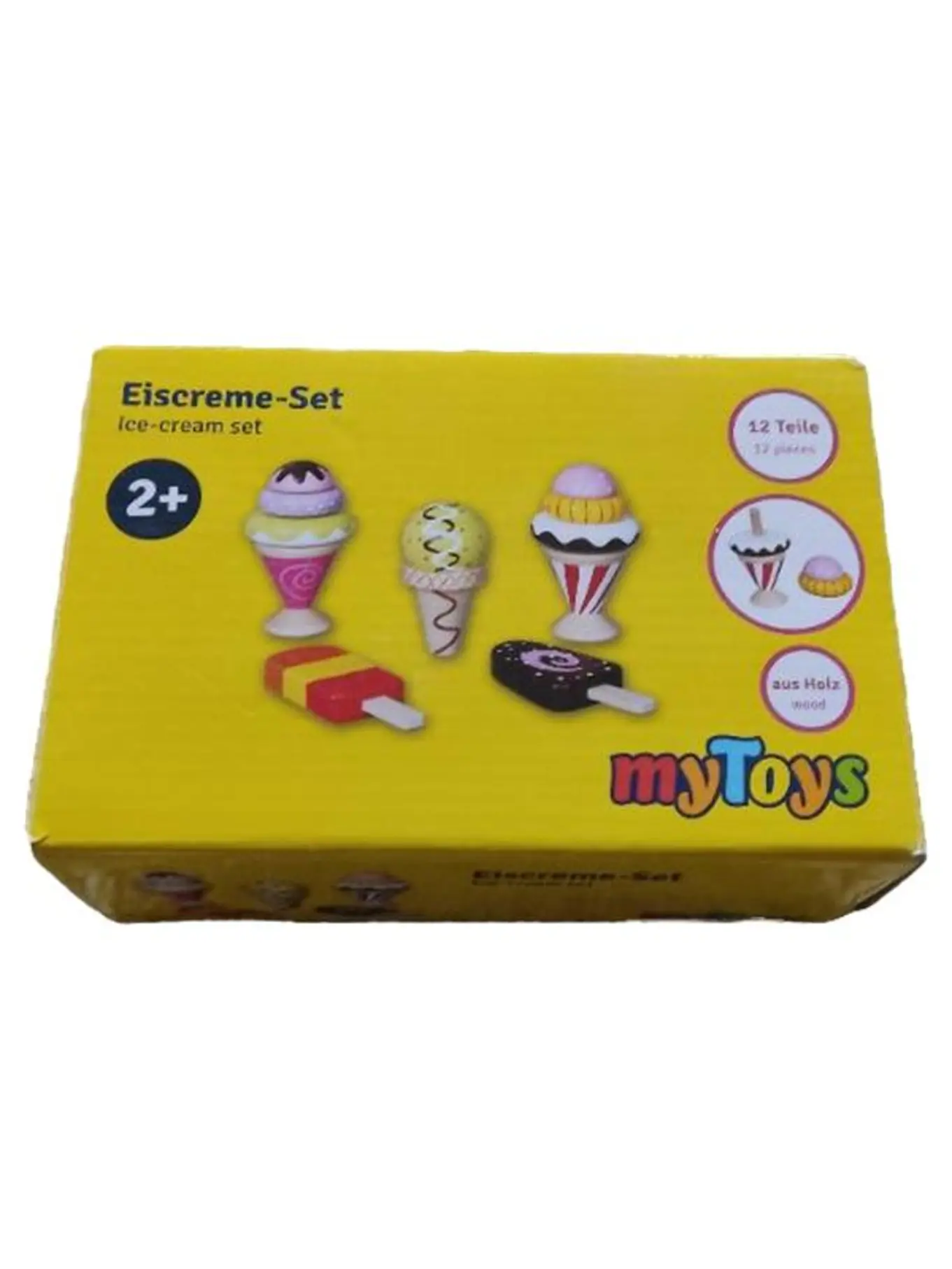 MYTOYS Eiscreme-Set 12 Teile Holzspielzeug Spielküche Zubehör ab 2 Jahre