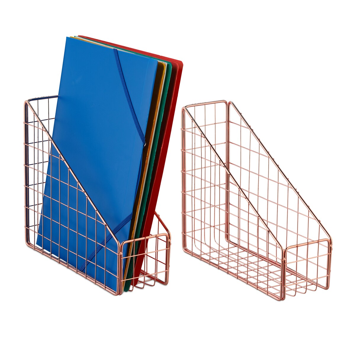 Relaxdays Stehsammler 2er Set, A4, Gitter Design, HBT 23 x 9 x 25,5 cm, Büro & Home-Office, Stehordner, Metall, roségold