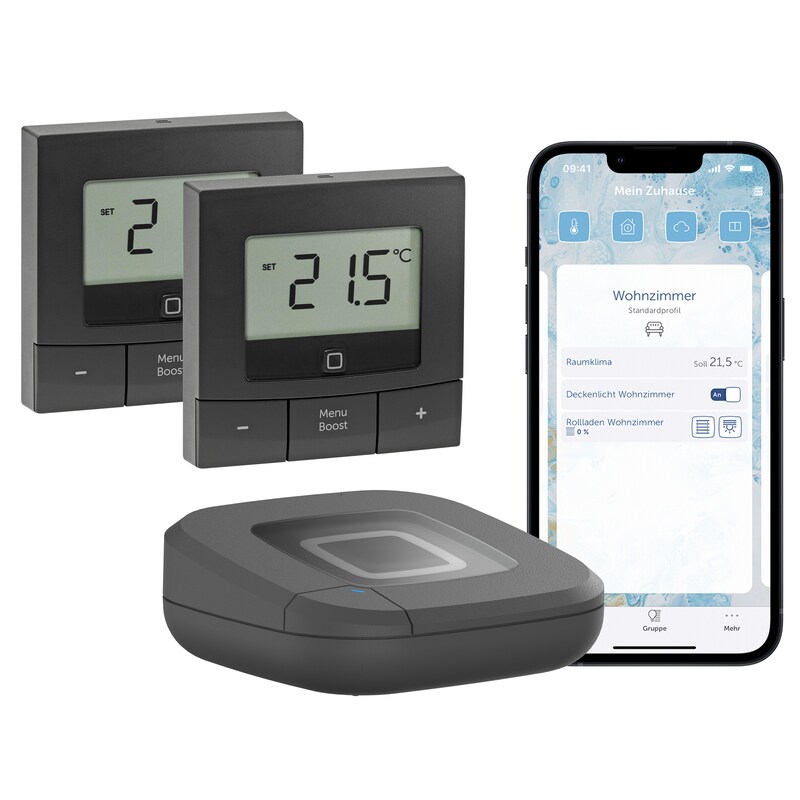 Homematic IP Starter Set Smarte Heizung Premium • 2x Wandthermostat • Access Point 2• anthrazit