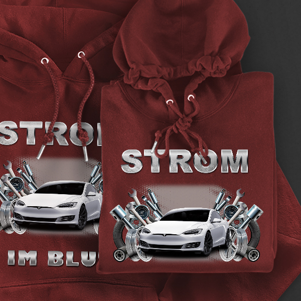Hoodie Design mit Autosilhouette Rot-S Strom im Blut mit deinem Automodell und Kennzeichen! Kapuzenpullover Pullover Sweatshirt Geschenk Freund Paarpu