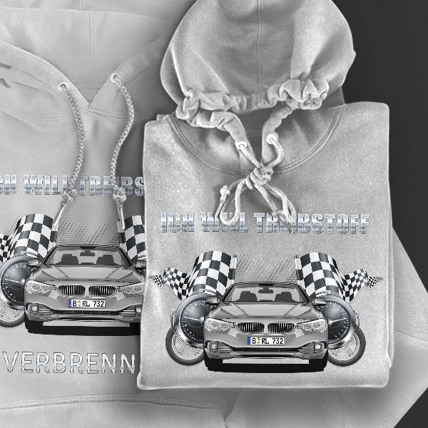 Hoodie Design mit Autosilhouette Weiß-M Ich will Treibstoff verbrennen mit deinem Automodell und Kennzeichen! Kapuzenpullover Pullover Sweatshirt Gesc