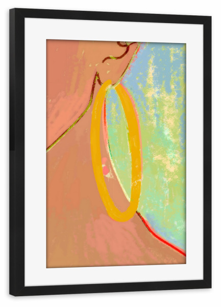 Poster mit Rahmen schwarz "Golden Hoops" artboxONE - Menschen,Fashion - Fashion,Boho style,Style,Feminine,Chic,Figurative,Gold,Earrings,Jewelry