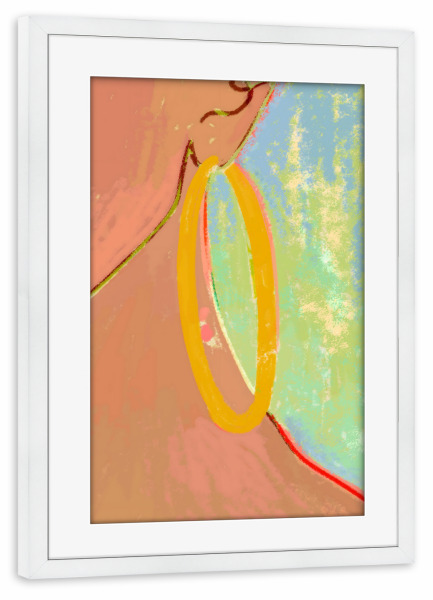 Poster mit Rahmen weiß "Golden Hoops" artboxONE - Menschen,Fashion - Fashion,Boho style,Style,Feminine,Chic,Figurative,Gold,Earrings,Jewelry