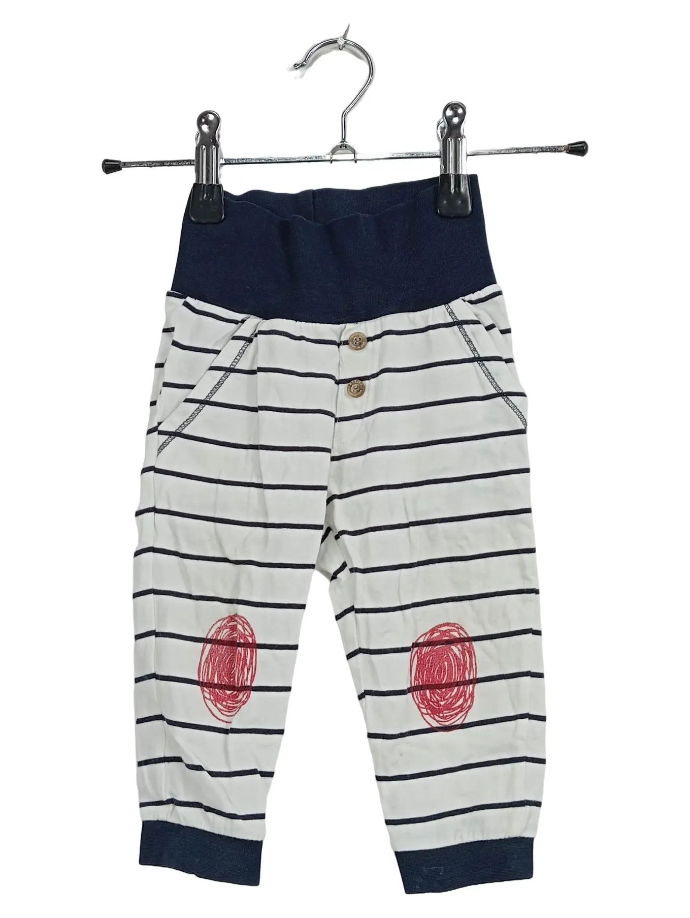 STEIFF Baby Hose gestreift Gr. 68 Weiß Blau Maritim Knopf Applikation