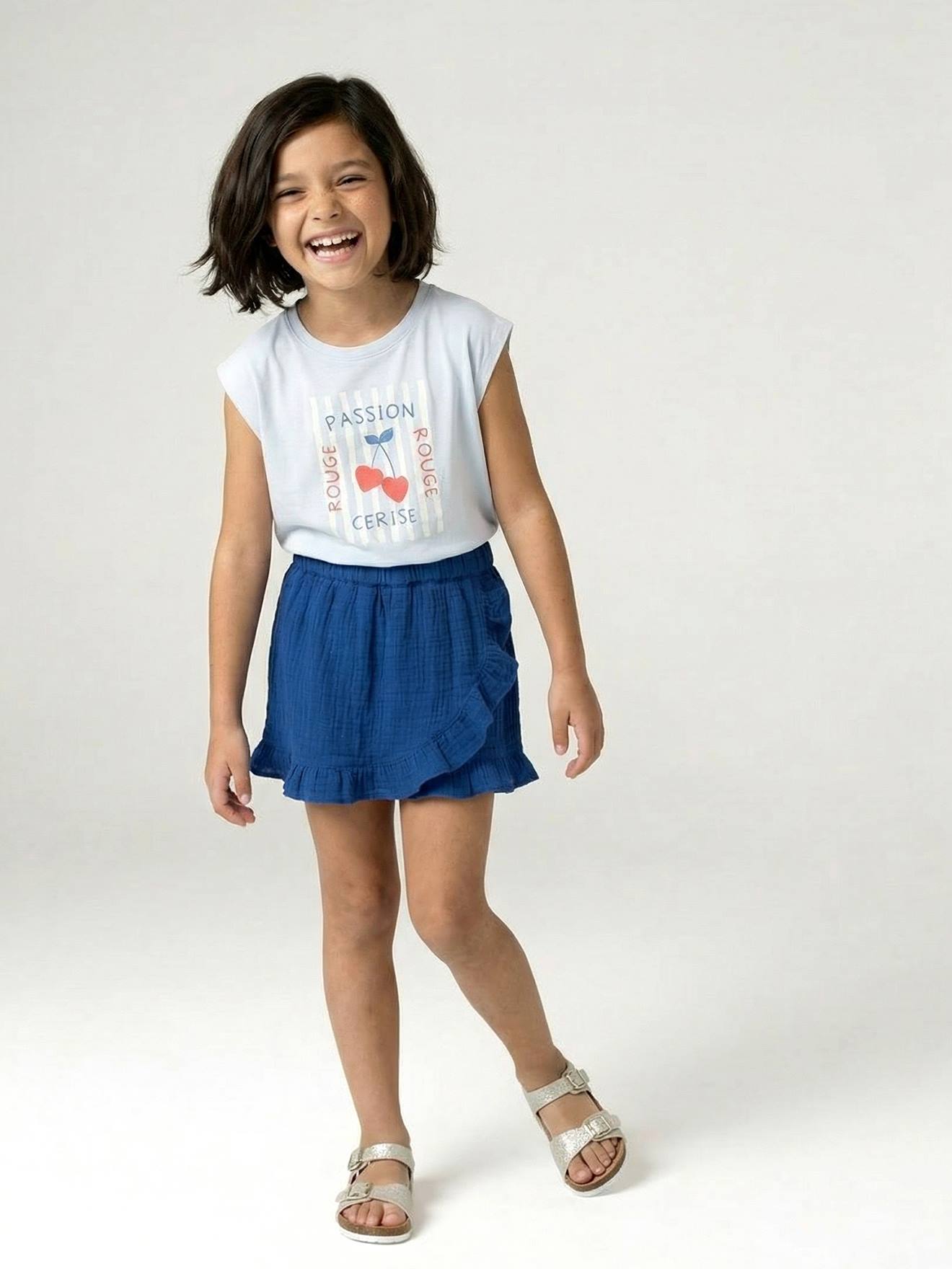 Hosenrock mit Rüschen aus Baumwoll-Musselin, Bundweite verstellbar, Mädchen elektrisch blau Gr. 116 von vertbaudet