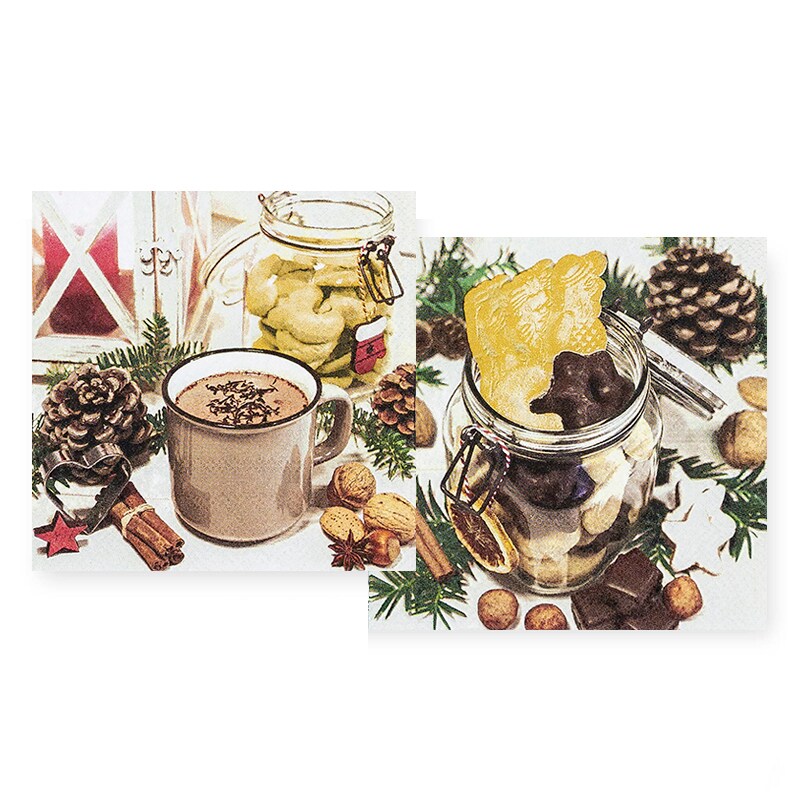 Home Fashion , Hot Chocolate & Cookies, Cocktail-Servietten 25 cm x 25 cm, 2 Designs je Packung, 10+10 Stück pro Pack, 12 Pack pro Karton