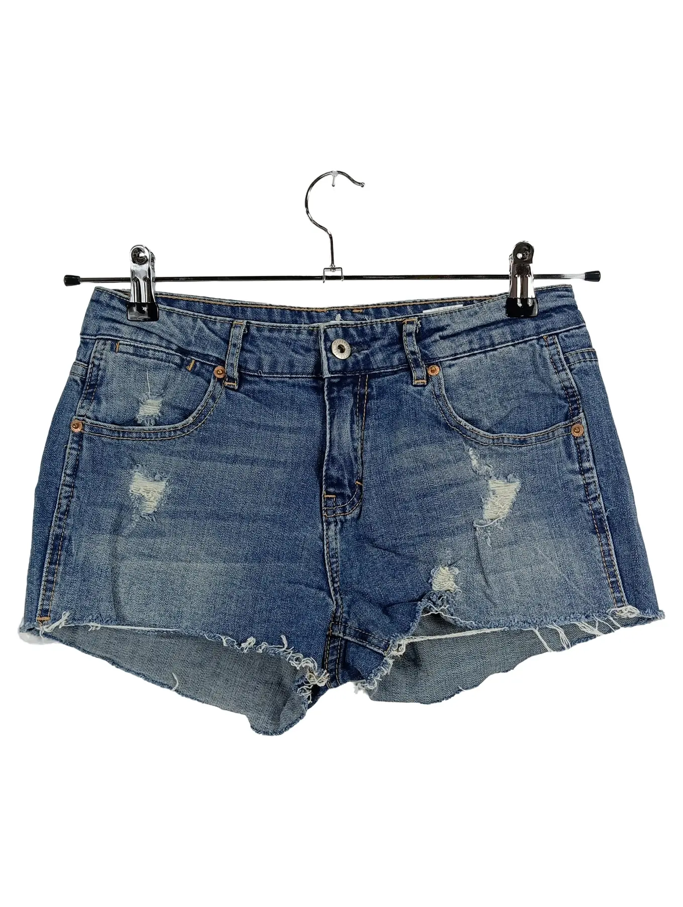 ONLY Damen Jeans Shorts W27 Blau Used Look Denim Hotpants Fransen Gr. 36 Damen