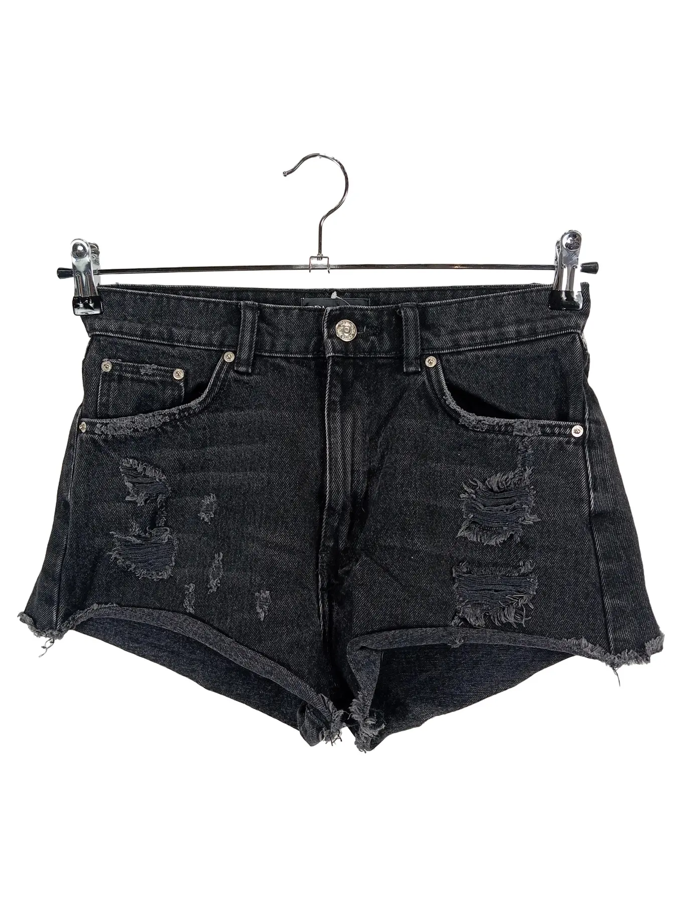 ZARA Damen Jeans-Shorts Schwarz Gr. 36 Distressed Hotpants Casual