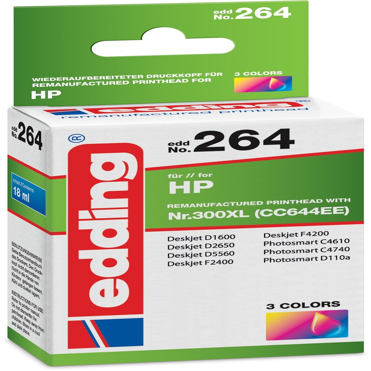 edding Tintenpatrone kompatibel mit HP No. 300XL (CC644EE) colour Packung mit 12 Stück