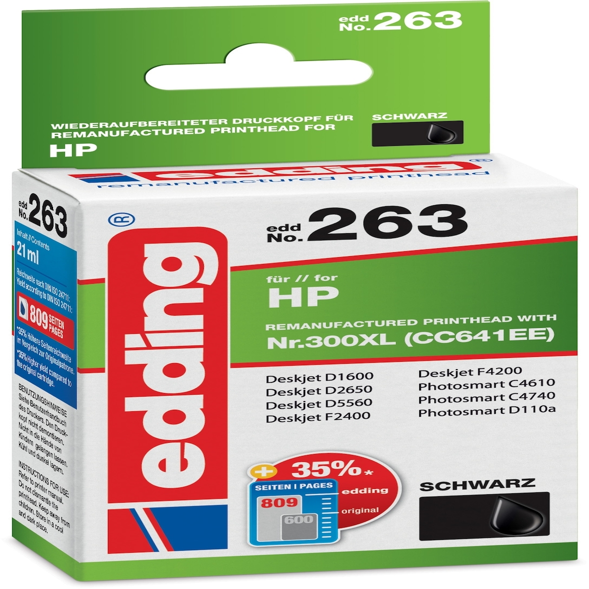 edding Tintenpatrone kompatibel mit HP No. 300XL (CC641EE) schwarz Packung mit 12 Stück