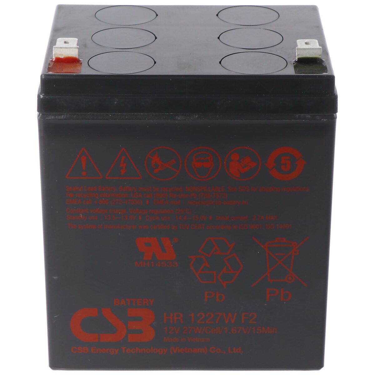 CSB-HR1227WF2 12 Volt AGM Bleiakku 2,25Ah 27Wh 90x70x106mm Faston 6,3mm Hochstromfest