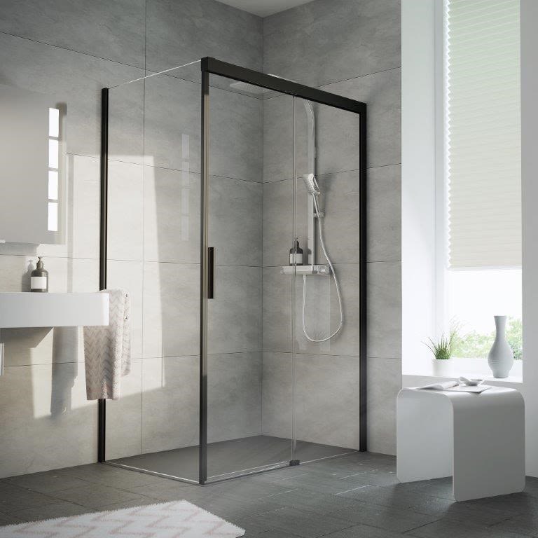 HSK Atelier Plan Schiebetür 2-teilig mit Seitenwand Sondermaß bis 200 cm, 17408500-41-50-200cm, Duschkabinen, schwarzmatt