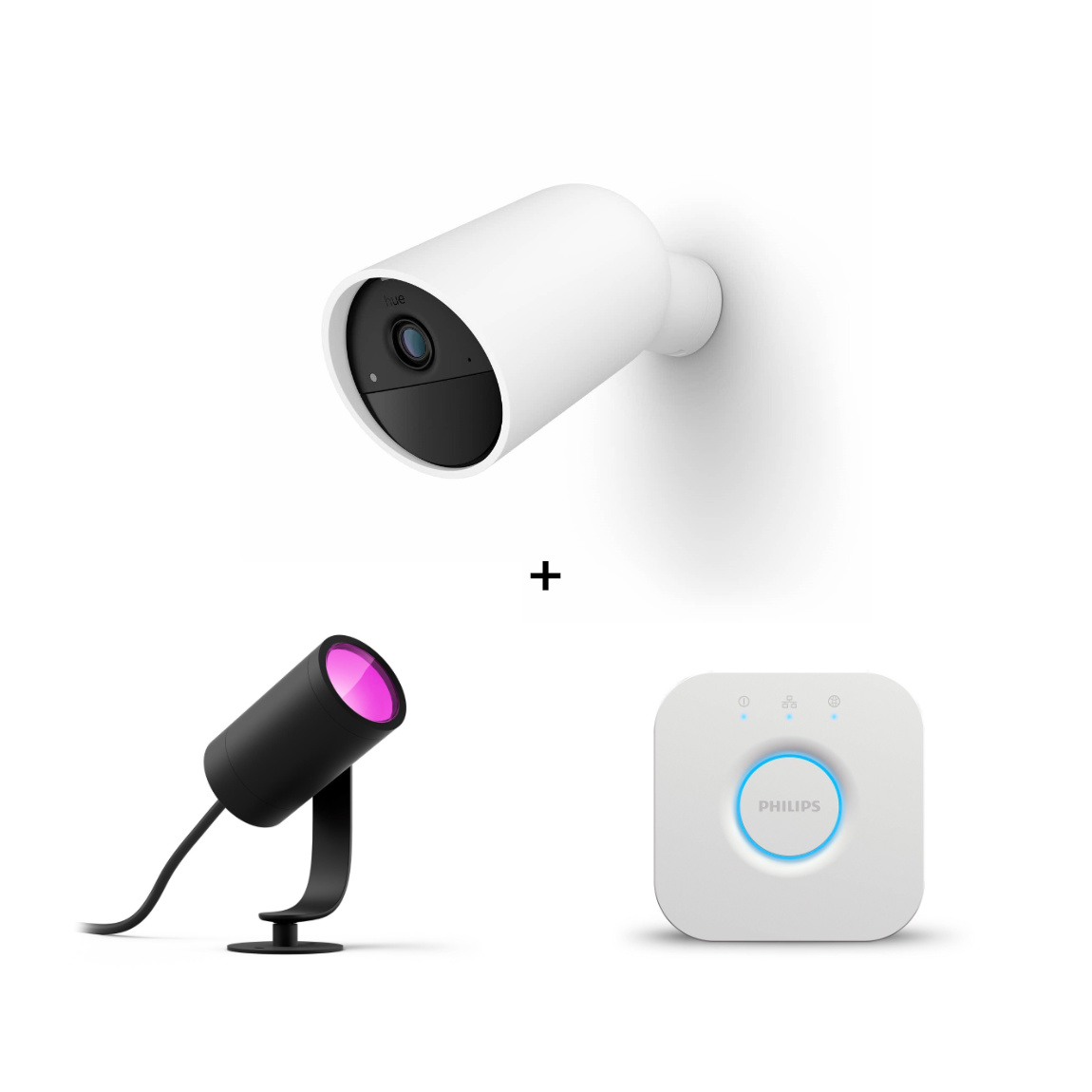 Philips Hue Secure kabellose Kamera + LED Spot Lily Basis Kit + Bridge