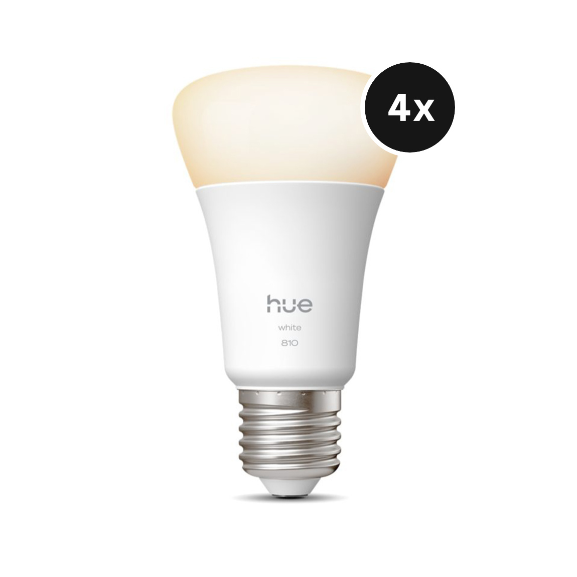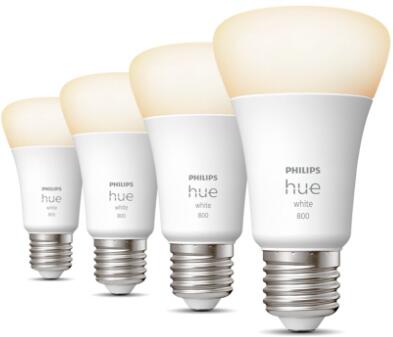 Philips Hue E27 Lampe, Viererpack, A60, 9W, 800lm, 2700K (929001821625)