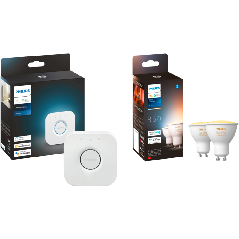 Philips HUE White Ambiance GU10 + Bridge LED-Lampe, Doppelpack, ersetzt 35 Watt