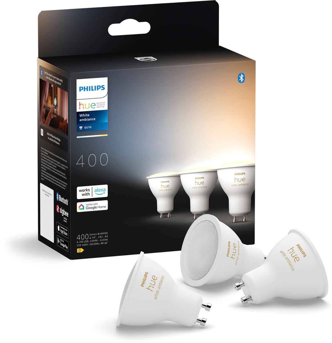 Philips Hue 400 Smarter Spot White Ambiance, LED, GU10, 400lm, 4,2W, 4000K, 3er-Pack, weiß (929003666703)