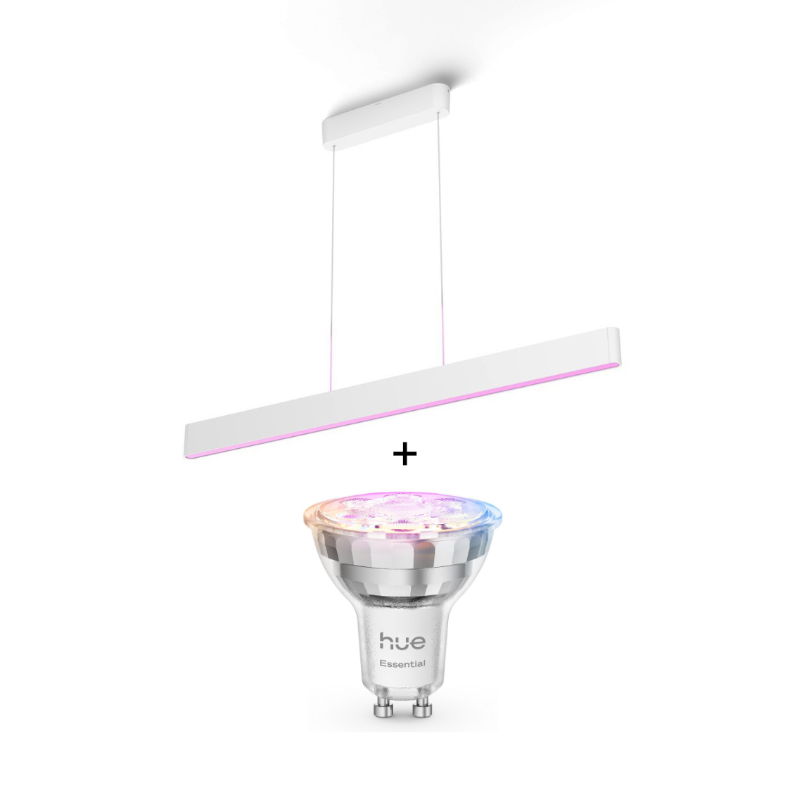 Philips Hue White & Color Ambiance Ensis Pendelleuchte 5500lm - Weiß + Essential White and Color Ambiance GU10 4,7W LED Lampe