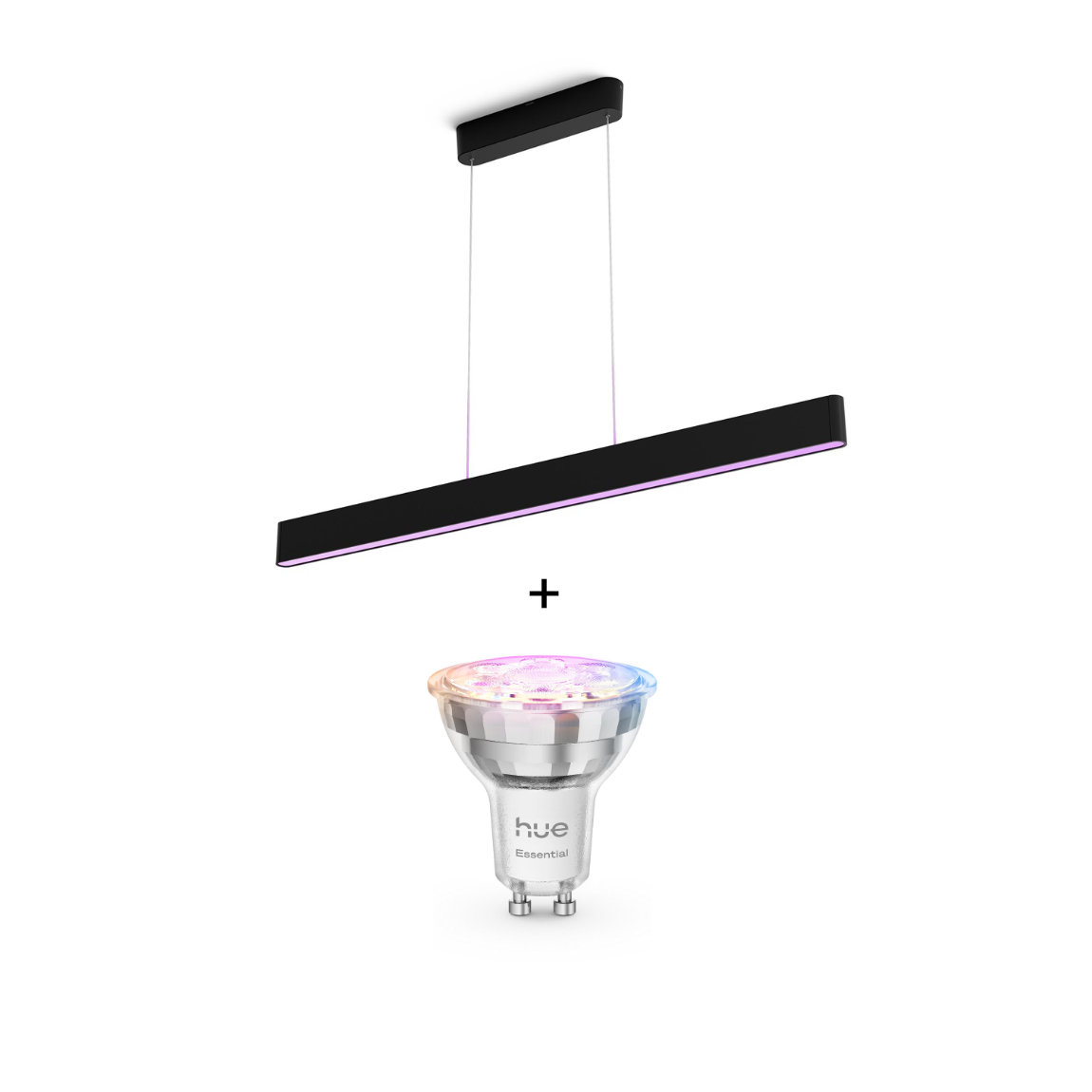 Philips Hue White & Color Ambiance Ensis Pendelleuchte 5500lm - Schwarz + Essential White and Color Ambiance GU10 4,7W LED Lampe