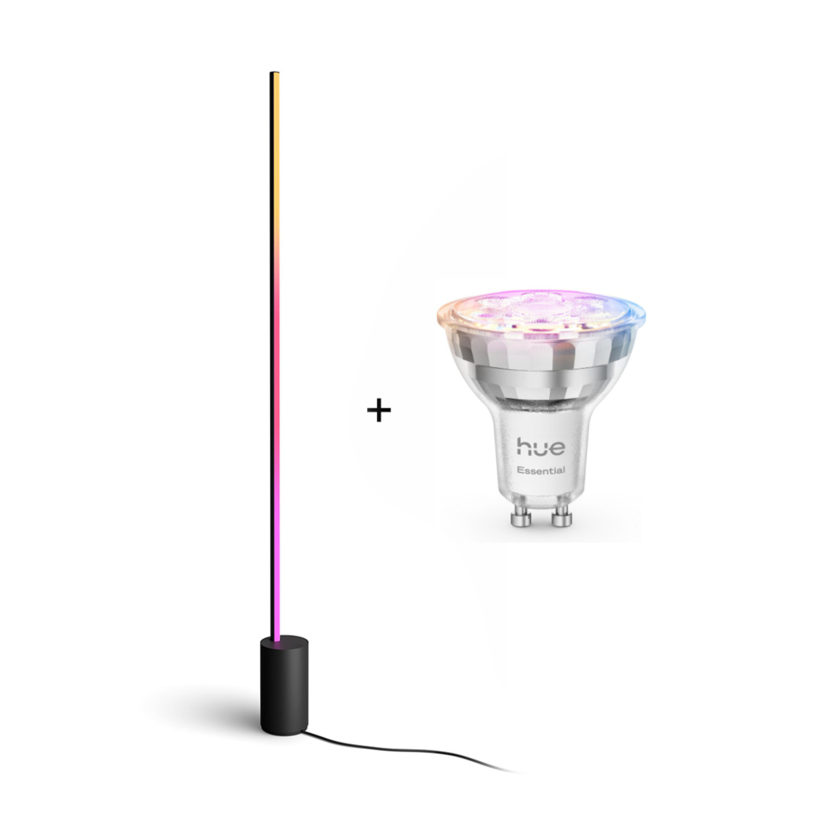 Philips Hue Gradient Signe Stehleuchte - Schwarz + Essential White and Color Ambiance GU10 4,7W LED Lampe